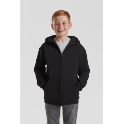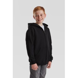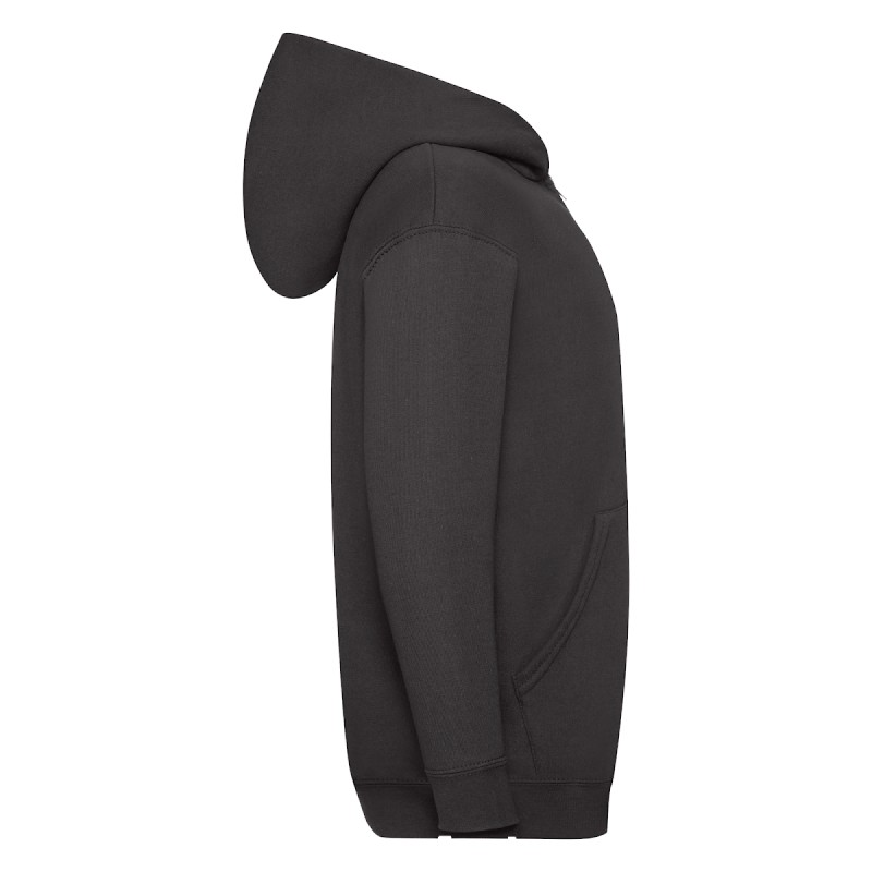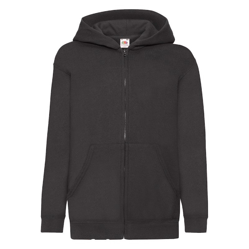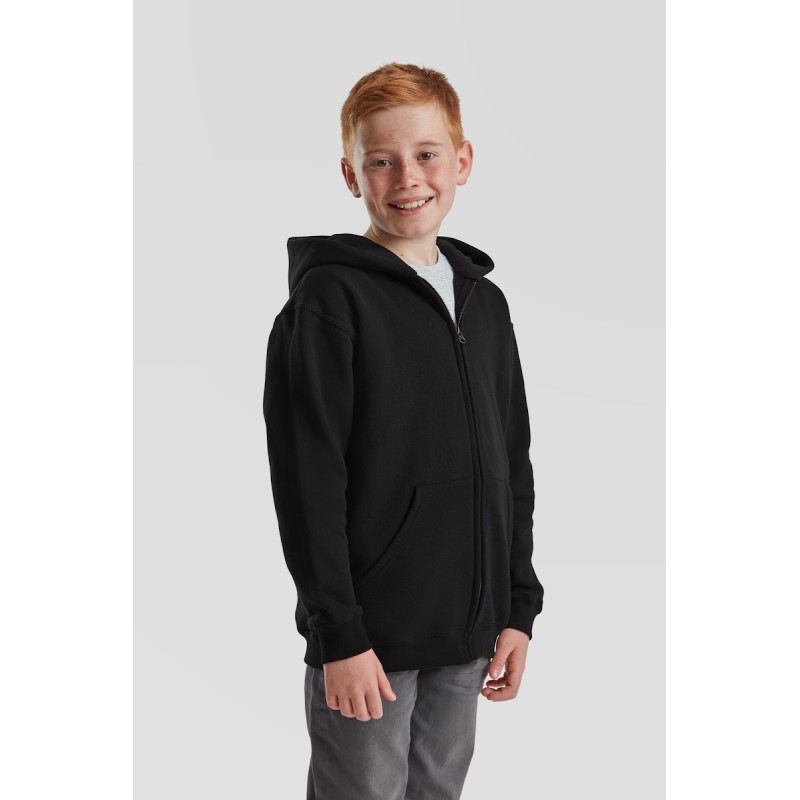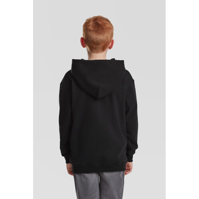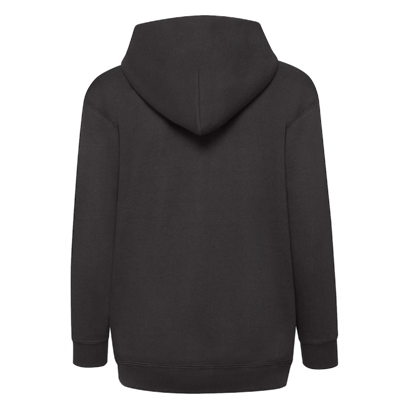 #Capuche double sans cordon, conforme avec la législation Européenne pour les enfants#Bande de propreté en jersey#Deux poches Kangourou#Zip recouvert métallisé pour de meilleures options d'impression#Taille et poignets avec bord côte en coton/LYCRA®