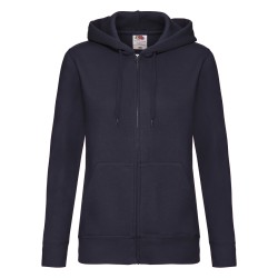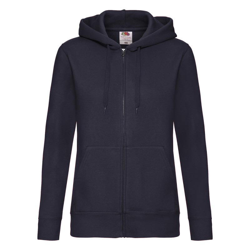 #Capuche double#Cordon ton sur ton plat#Bande de propreté en jersey#Coutures latérales pour une coupe féminine cintrée#Deux poches Kangourou#Zip recouvert métallisé pour de meilleures options d'impression#Taille et poignets en bord côte coton/élasthanne
