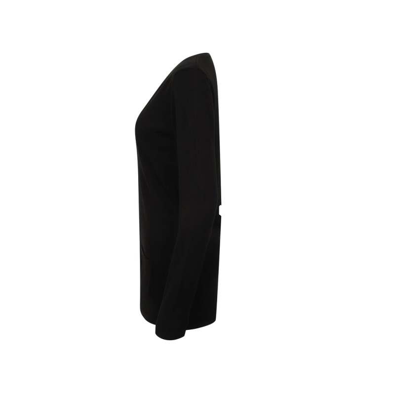 Jauge 12. Larges ourlet et poignets pliés en bords côte. 2 poches.