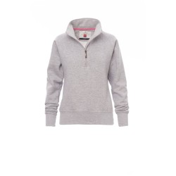 Sweat-shirt pour femme à demi-zip assorti, en plastique avec curseur en métal, manches raglan, poignets et taille en bord côtes élastique, coutures renforcées.