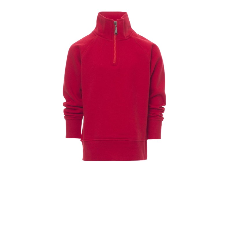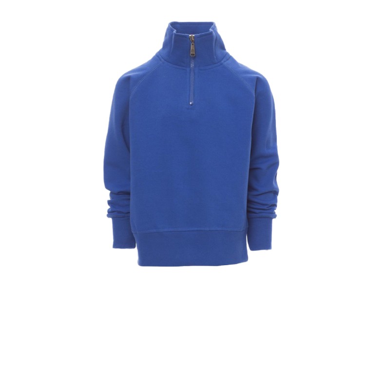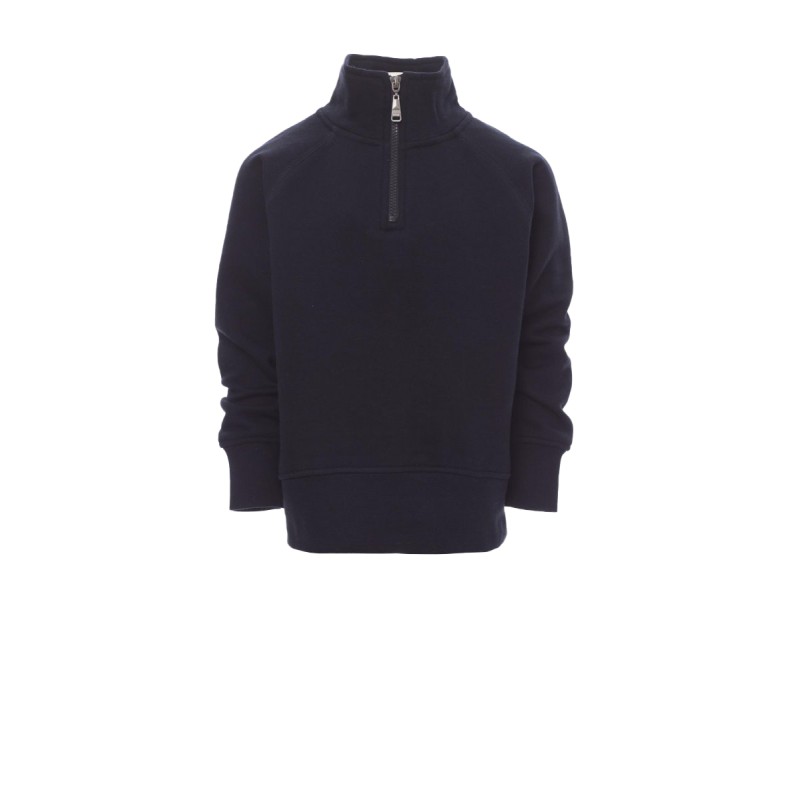 Sweat-shirt pour enfant à demi-zip assorti, en plastique avec curseur en métal, manches raglan, poignets et taille en bord côtes élastique, coutures renforcées.
