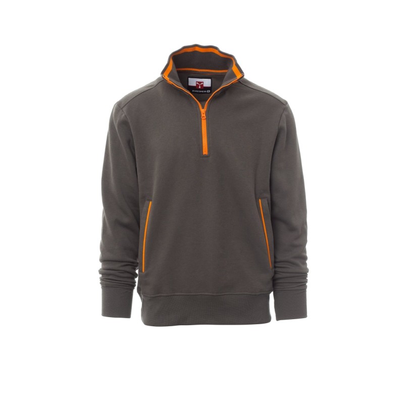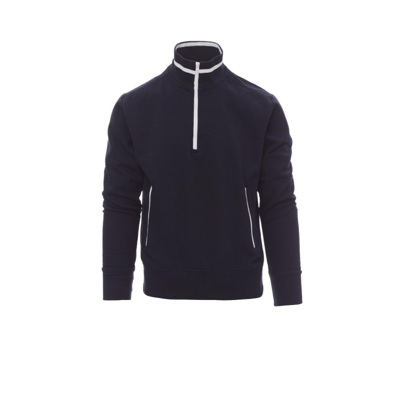 Sweat-shirt homme, à demi-fermeture éclair en plastique de couleur en contraste, curseur en métal, profil en contraste dans le col et sur poches latérales
