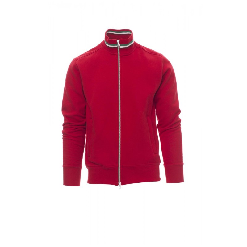 Sweat-shirt homme full zip SBS en plastique avec rayures tricolores contrastées et double curseur en métal. Col en bord-côtes avec rayures tricolores contrastées, manches montées, deux poches extérieures fermées par zip, poignets et taille en côtes élastiques. Coutures renforcées.