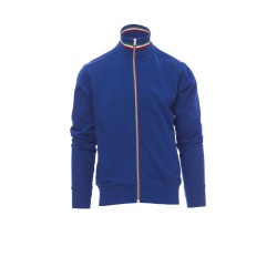 Sweat-shirt homme full zip SBS en plastique avec rayures tricolores contrastées et double curseur en métal. Col en bord-côtes avec rayures tricolores contrastées, manches montées, deux poches extérieures fermées par zip, poignets et taille en côtes élastiques. Coutures renforcées.