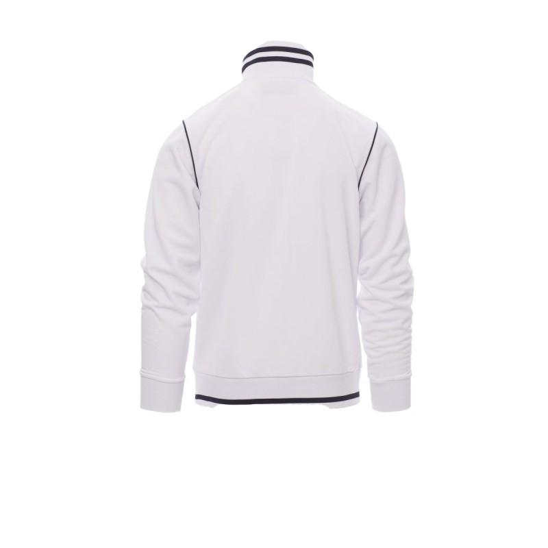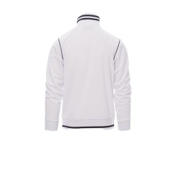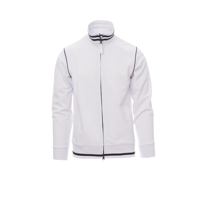 Sweat-shirt homme, full zip en contraste, couvert, en plastique et avec double curseur en métal. Col et taille en bord-côte avec rayures en contraste, poignets en côtes élastiques, passepoil aux emmanchures, deux poches latérales avec zip, coutures renforcées, traitement extérieur en piquet pour une meilleure transpiration du tissu.