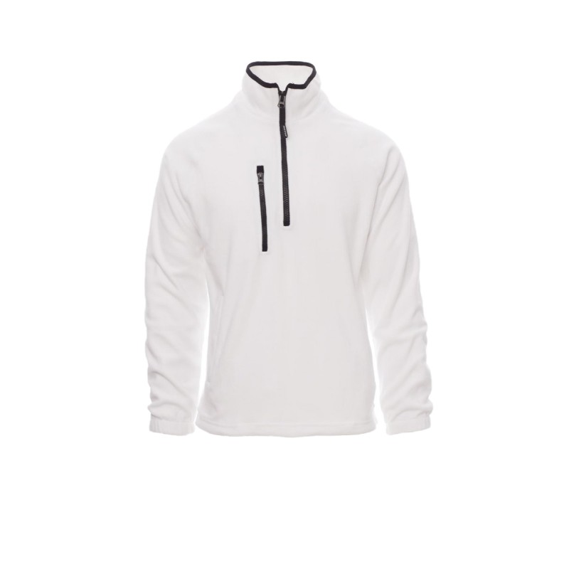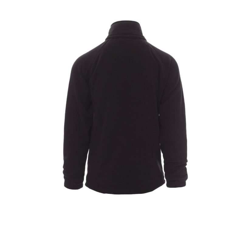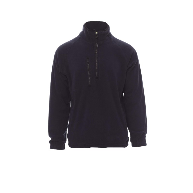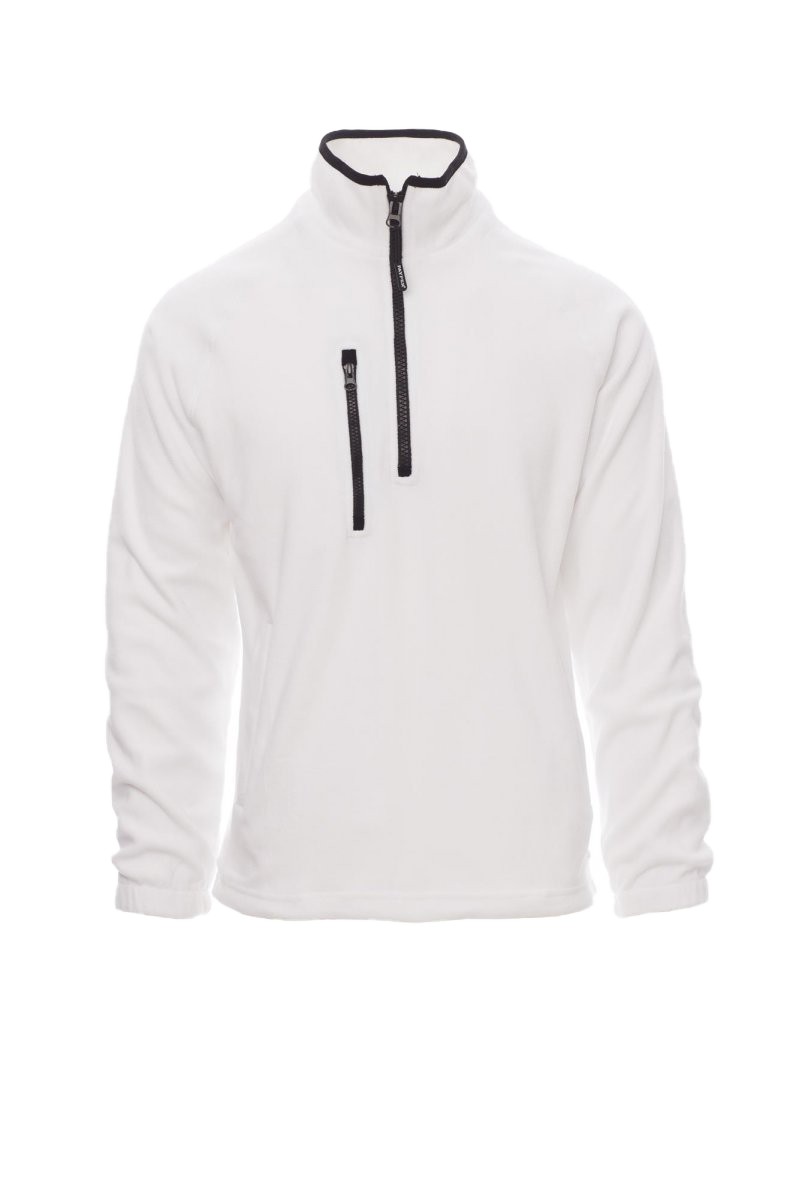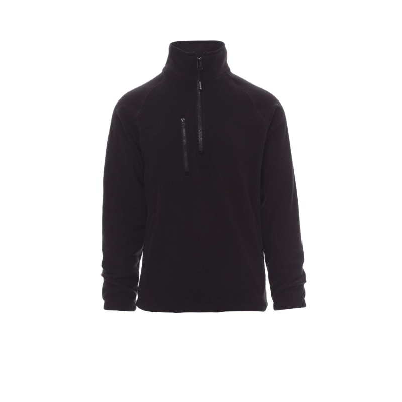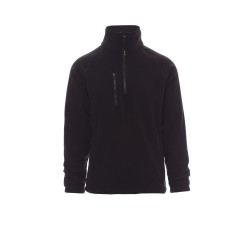 Veste polaire à demi-zip de 8 mm en plastique noir, manches raglan, coulisse réglable à la taille, élastiques serre-poignet, deux poches avec zips couverts, une poche avec zip sur le devant, col avec bordure de renfort en contraste, coutures renforcées.