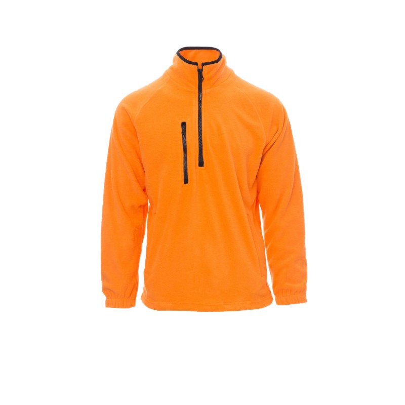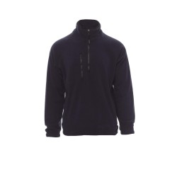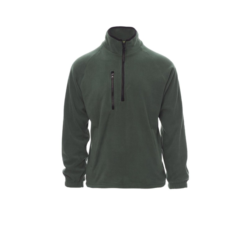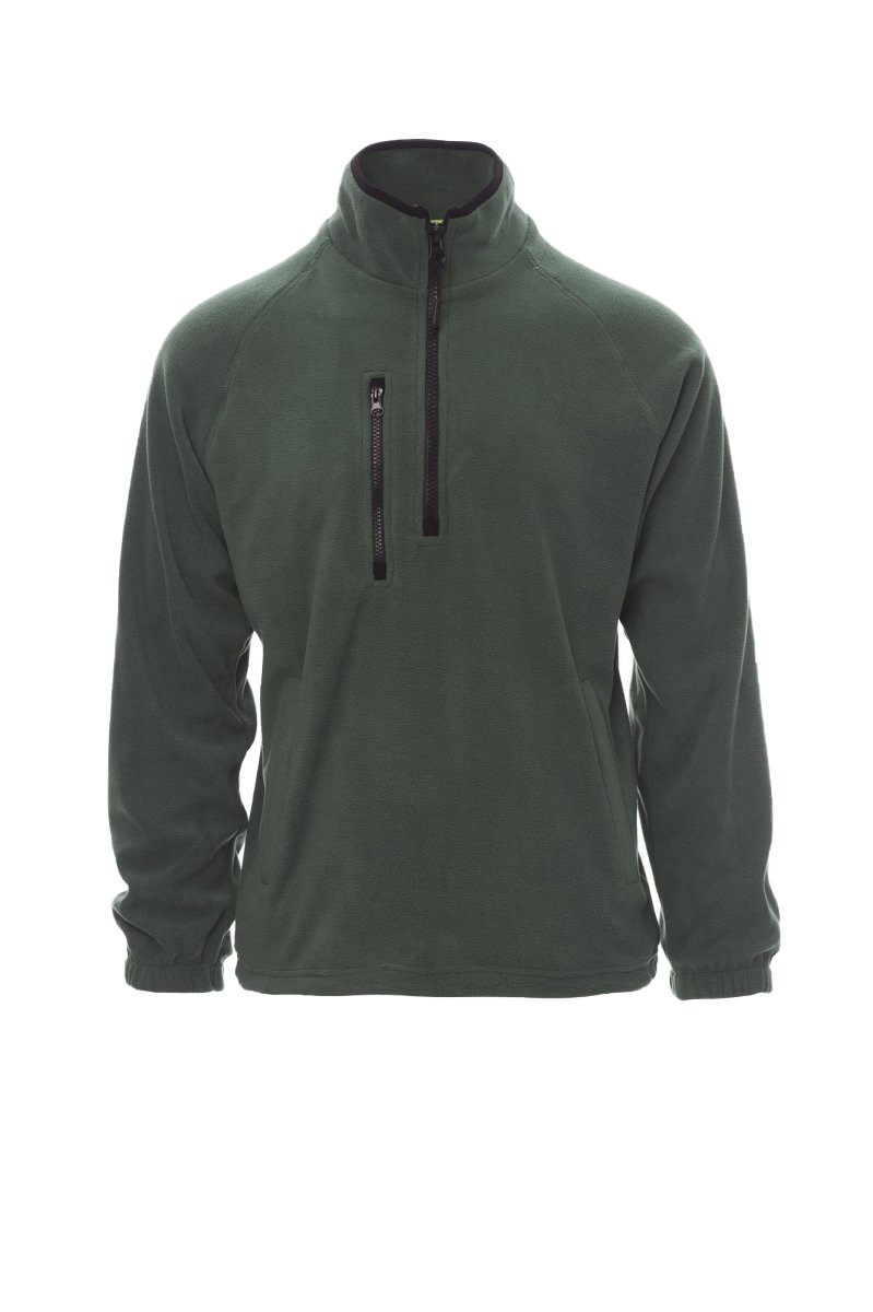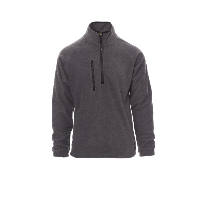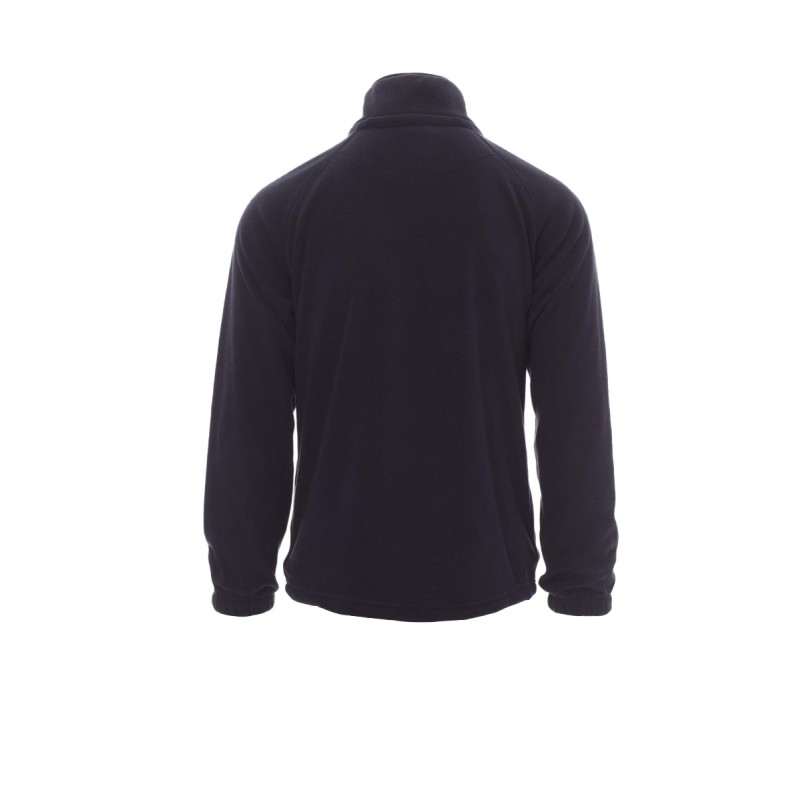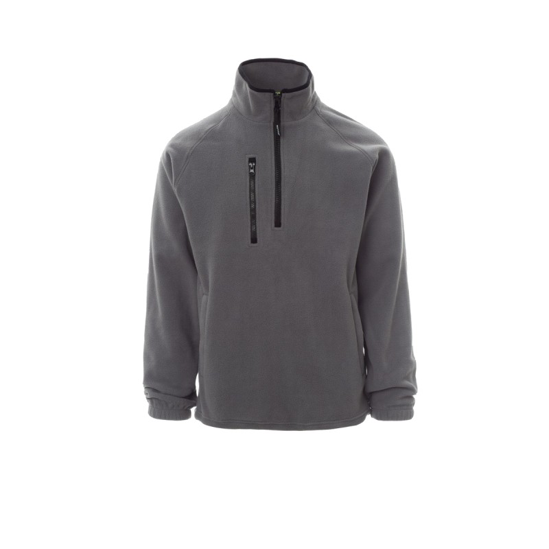 Veste polaire à demi-zip de 8 mm en plastique noir, manches raglan, coulisse réglable à la taille, élastiques serre-poignet, deux poches avec zips couverts, une poche avec zip sur le devant, col avec bordure de renfort en contraste, coutures renforcées.