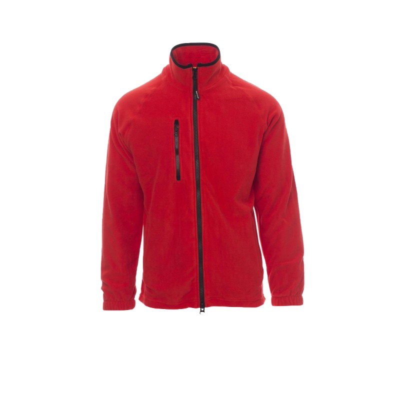 Veste polaire pour homme à zip intégral de 8 mm en plastique noir, manches raglan, coulisse réglable à la taille, élastiques serre-poignet, deux poches avec zips couverts, une poche avec zip sur le devant, col avec bordure de renfort en contraste, coutures renforcées.