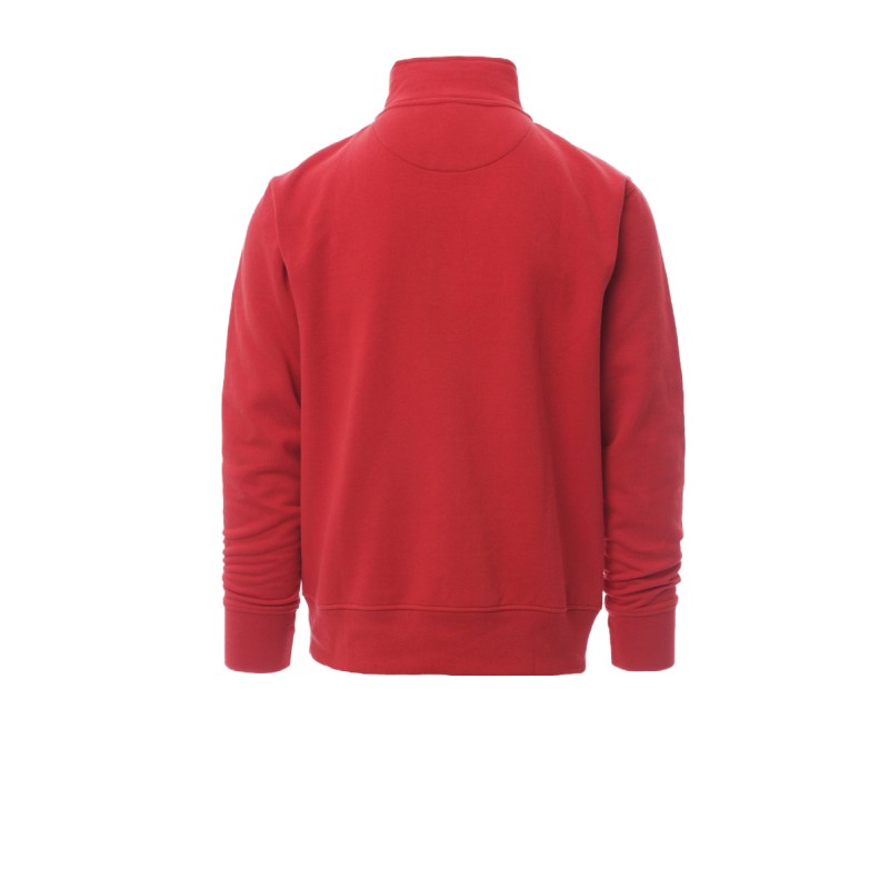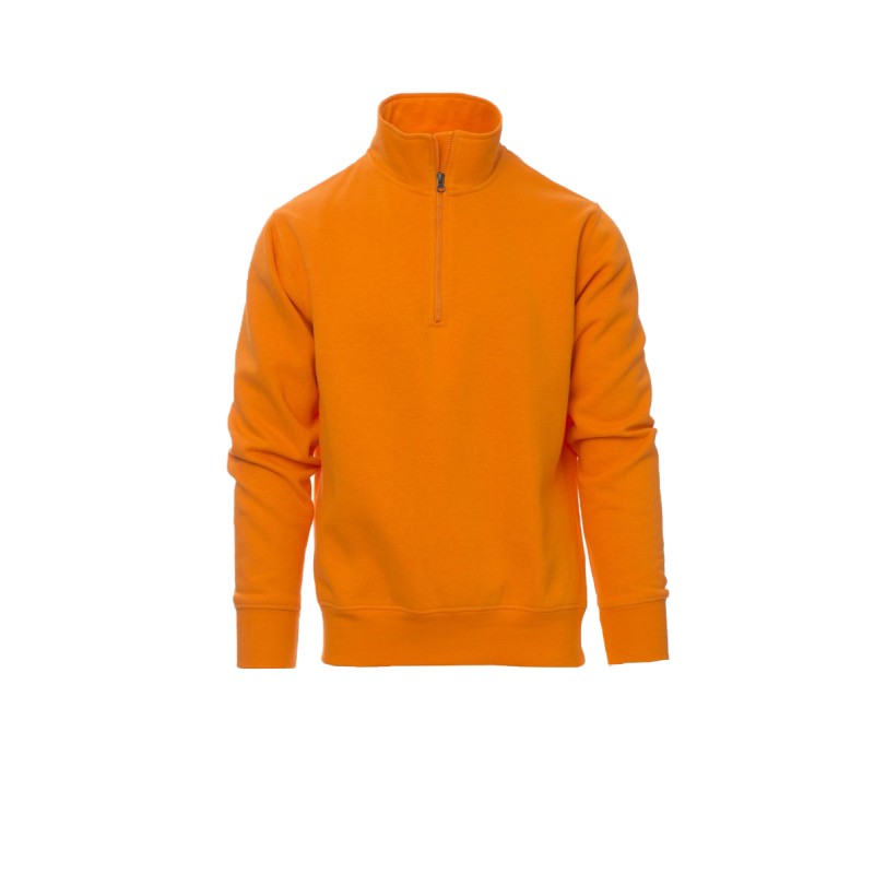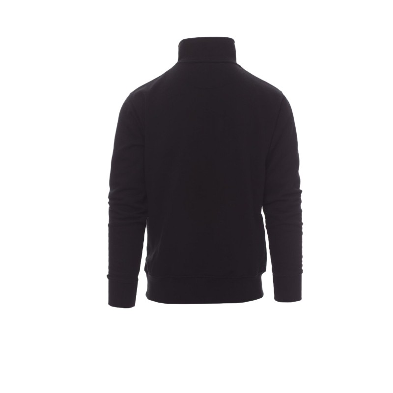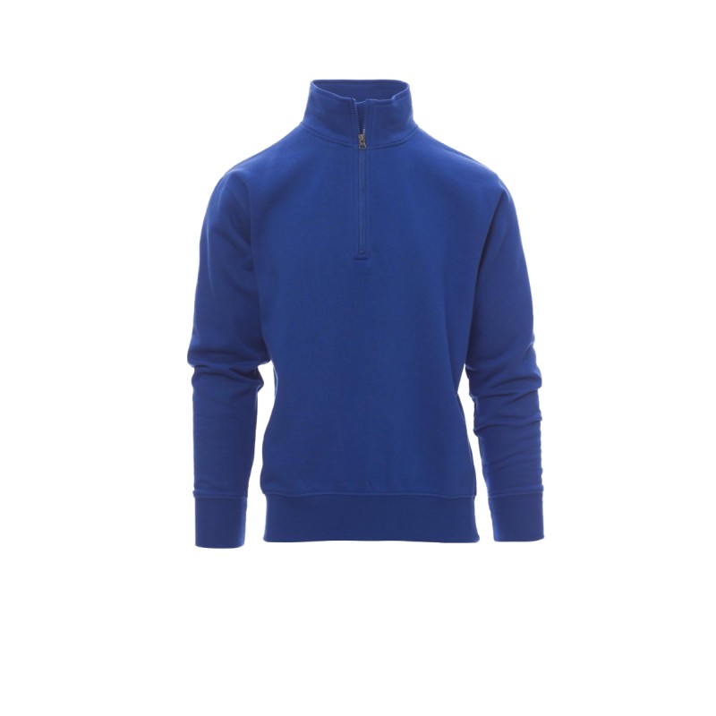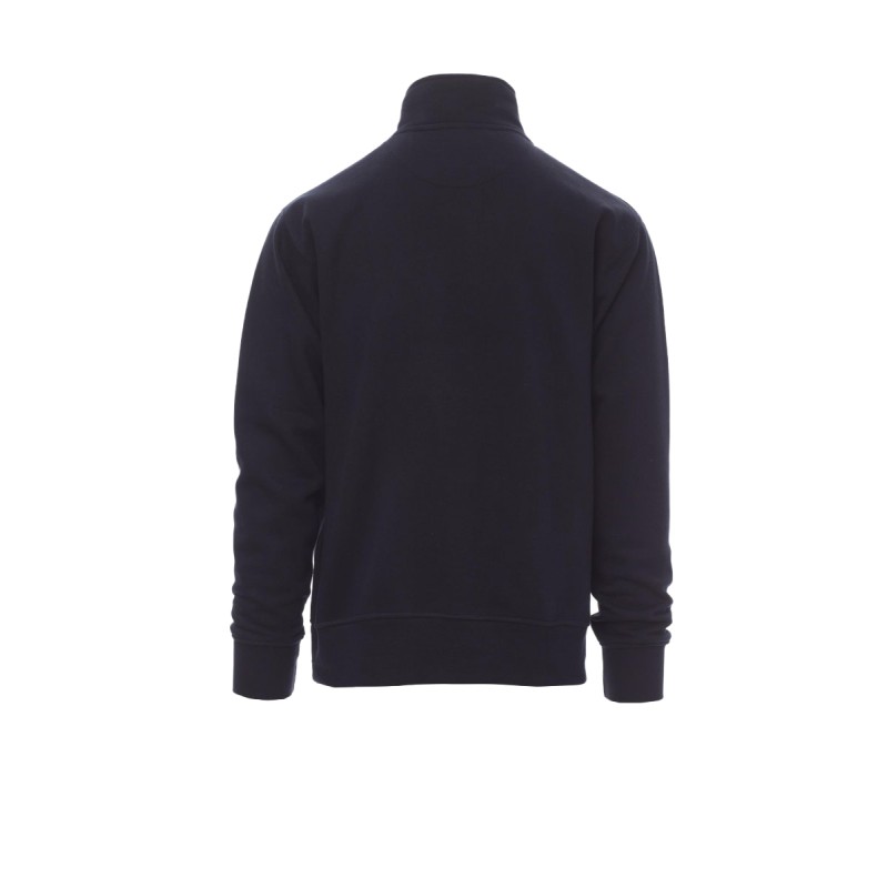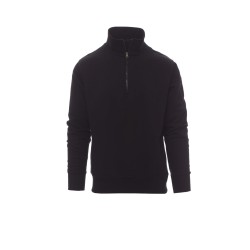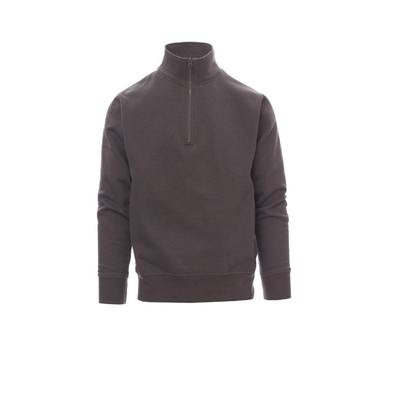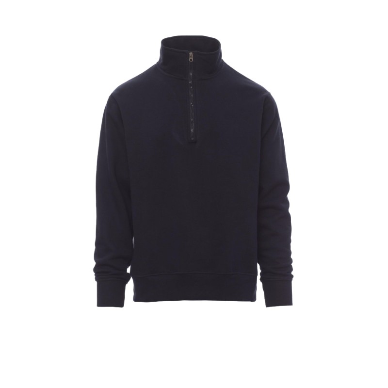 Sweat-shirt pour homme à demi-fermeture éclair assortie, en plastique avec curseur en métal, manches montées, poignets et taille en bord à côtes élastifié, coutures renforcées.