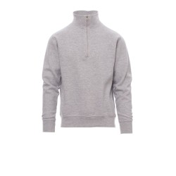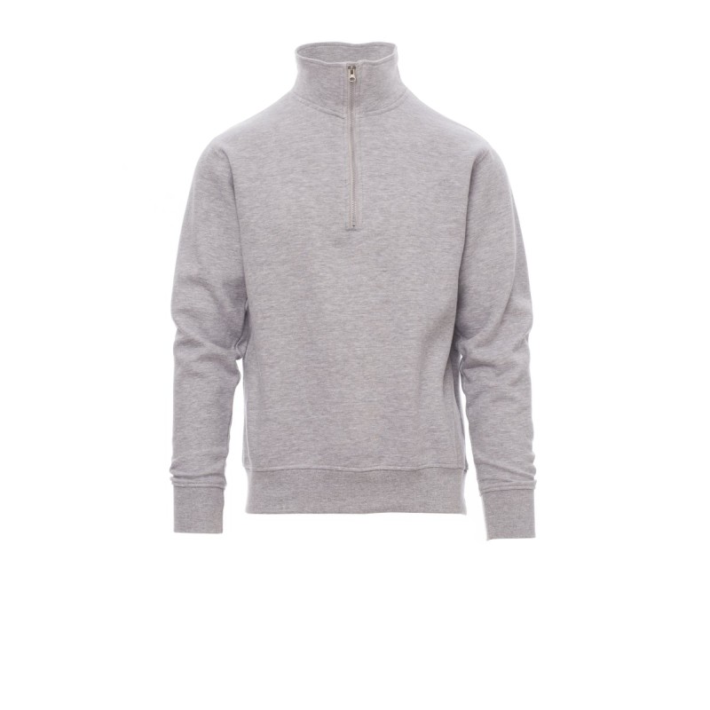 Sweat-shirt pour homme à demi-fermeture éclair assortie, en plastique avec curseur en métal, manches montées, poignets et taille en bord à côtes élastifié, coutures renforcées.