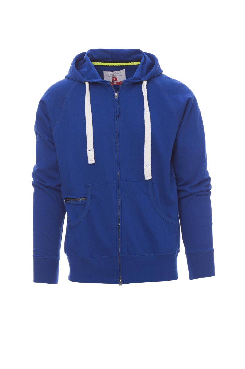 Sweat-shirt homme full zip SBS couvert avec double curseur en métal . Capuche à deux coutures et coulisse blanche avec coutures teinte assortie et anneaux en métal . Manches raglan, poches kangourou avec petite poche zippée, poignets et taille en côtes élastiques. Coutures renforcées.