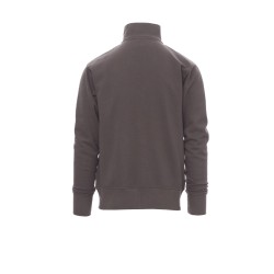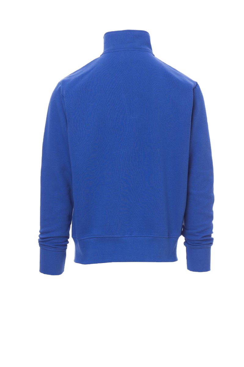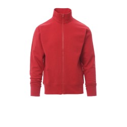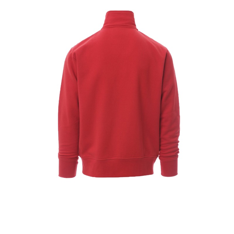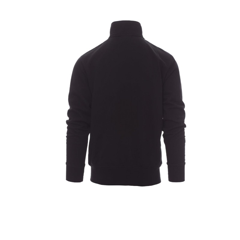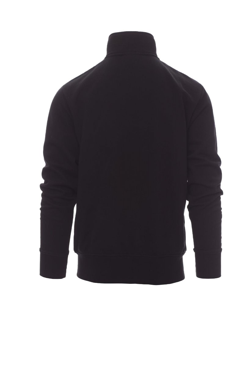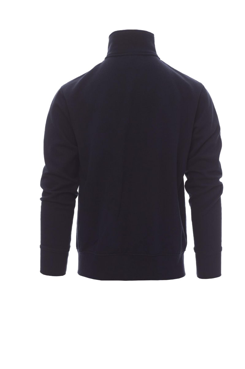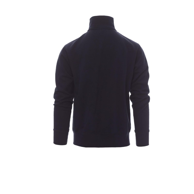 Sweat-shirt pour homme à zip intégral en plastique assorti avec curseur simple en métal, manches montées, poignets et taille en bord côtes élastique, coutures renforcées, ruban de renfort intérieur col assorti.