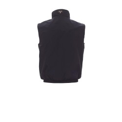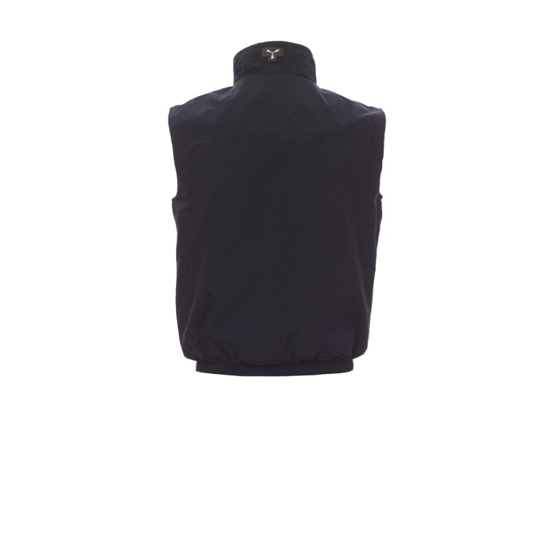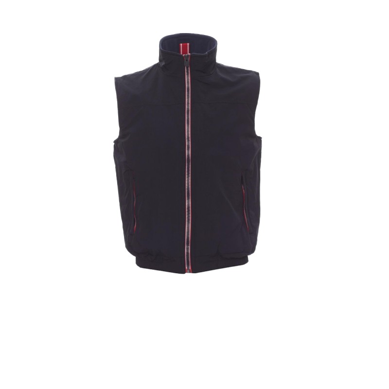Gilet unisexe à zip de 8 mm en contraste, élastique à la taille, deux poches extérieures avec zip couvert. Intérieur : rembourré, micropolaire sur le col et le dos, une poche zippée et prédisposition pour casques et câble smartphone, fermeture éclair sur la poitrine et en bas pour faciliter impressions et broderies.