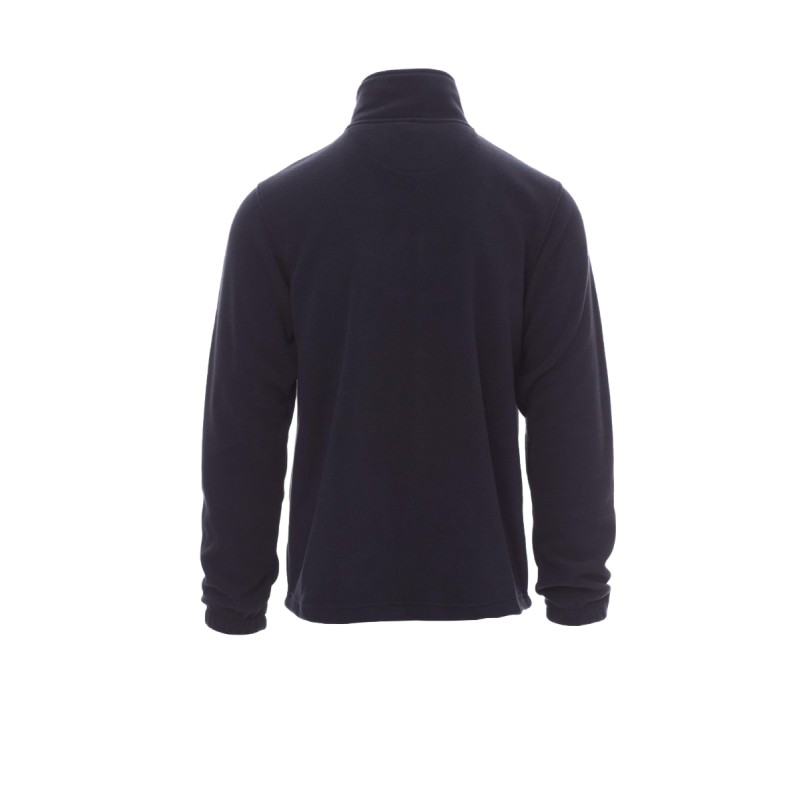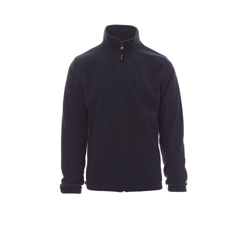 Veste polaire à zip intégral en nylon curseur simple, manches montées, élastiques serre-poignet et à la taille, deux poches avec zips couverts, coutures renforcées, bas droit.