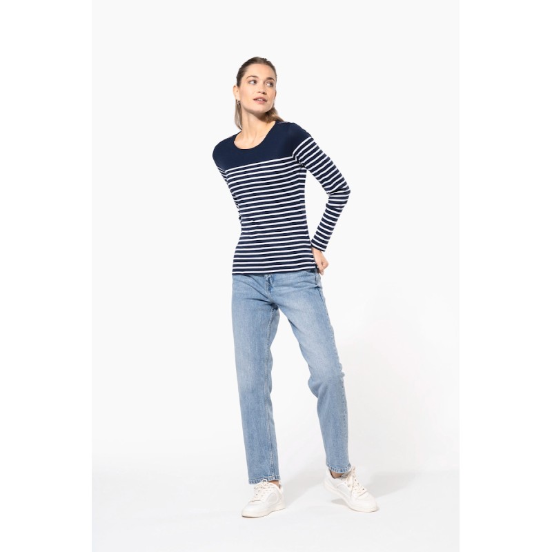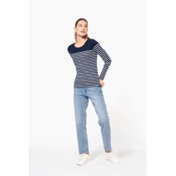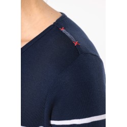 100% coton côte 1x1. Encolure ronde. Point fantaisie sur l'épaule. Fentes latérales.