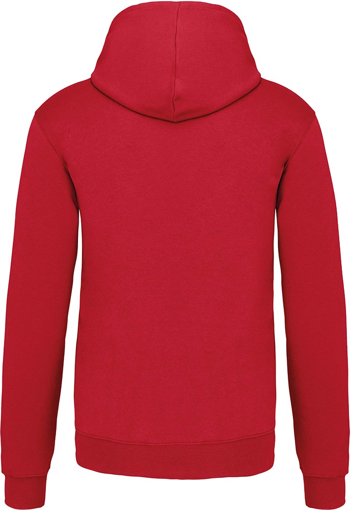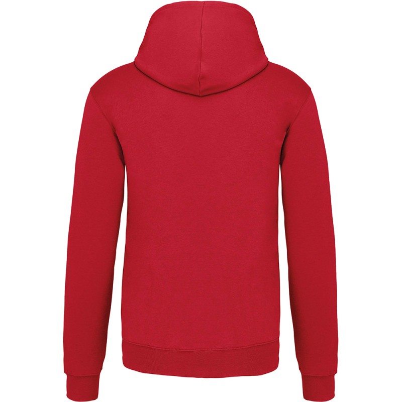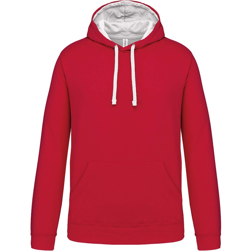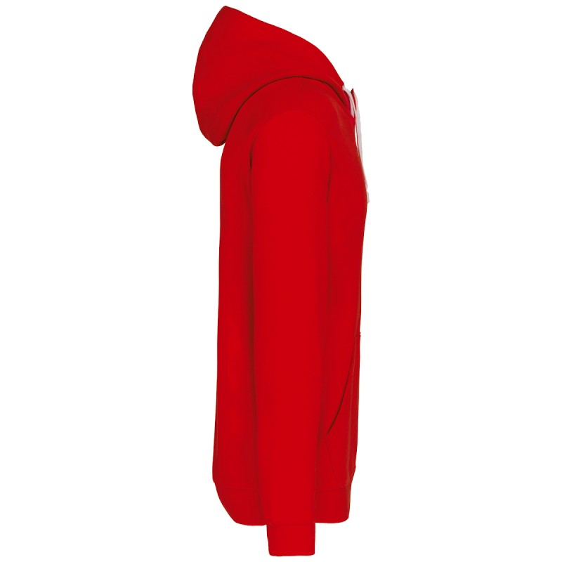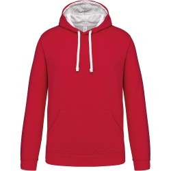 80% coton / 20% polyester. Coton peigné. Molleton gratté. Passe-fil écouteurs dans la poche kangourou et encolure. Finitions bord-côte aux poignets et bas du vêtement. Capuche doublée et contrastée avec cordon de serrage.