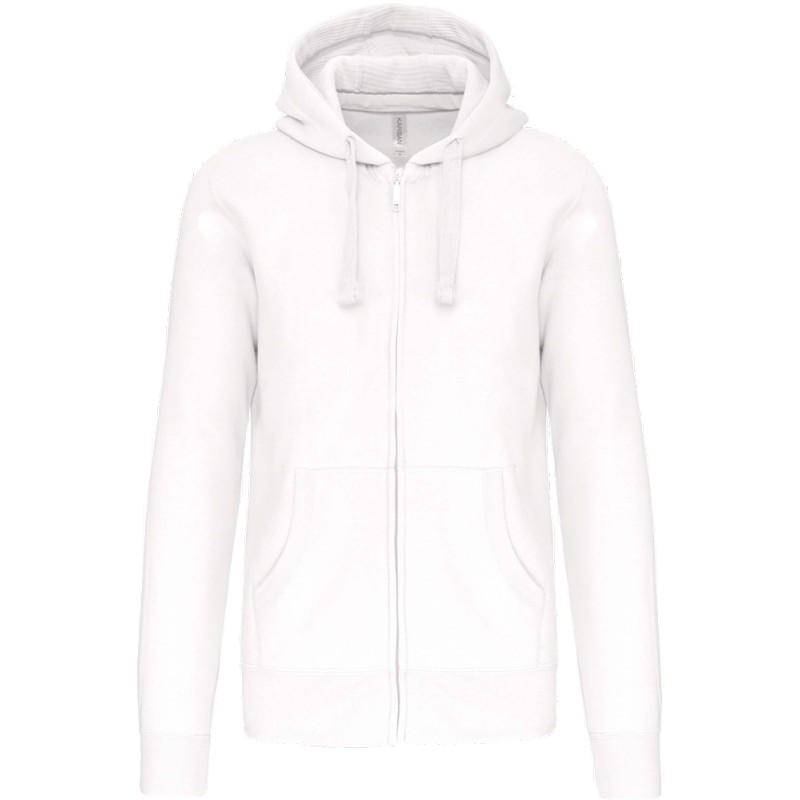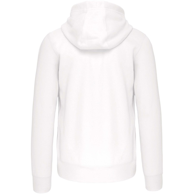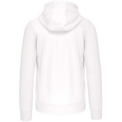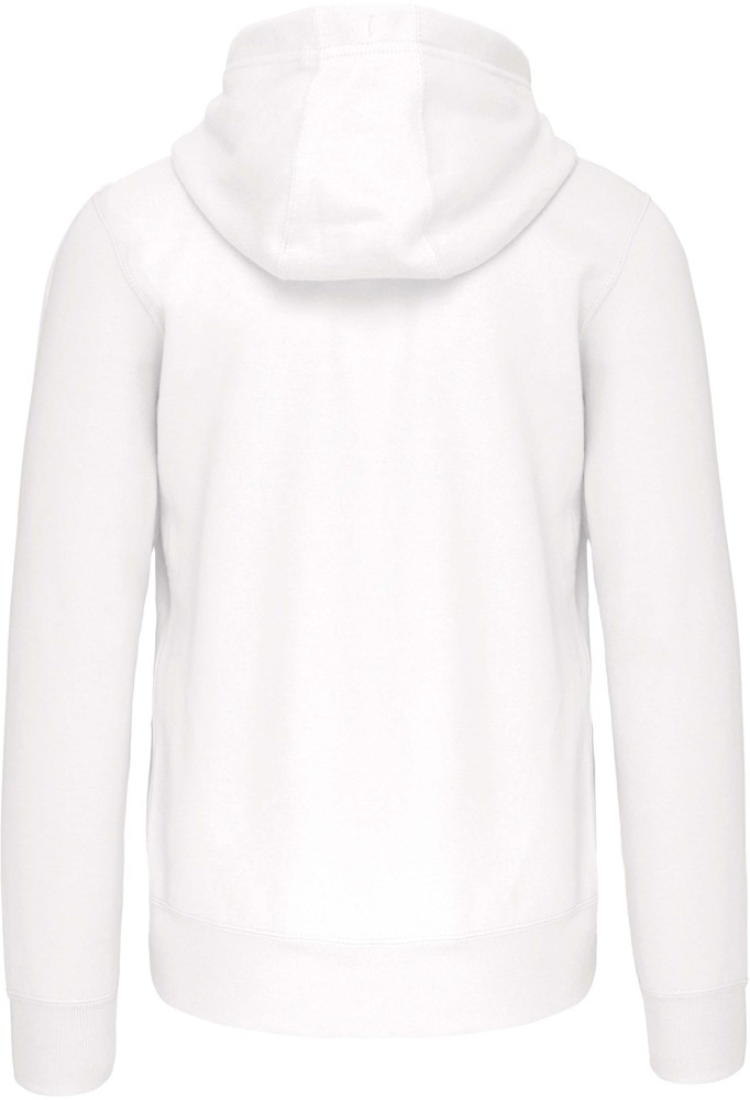 80% coton / 20% polyester (Ash Heather : 79% coton / 20% polyester / 1% viscose). Surface extérieure 100% coton peigné. Molleton gratté 3 fils avec traitement LSF (Low Shrinkage fleece). Bande de propreté contrastée à l'encolure (Navy pour le coloris Oxford Grey et Ash Heather ; Oxford Grey pour tous les autres coloris). Capuche doublée en nid d'abeille avec cordon de serrage. Poches kangourou. Finition bord-côte entrée de poches, bas de manches et bas de vêtement. Fermeture zippée.