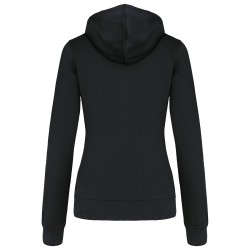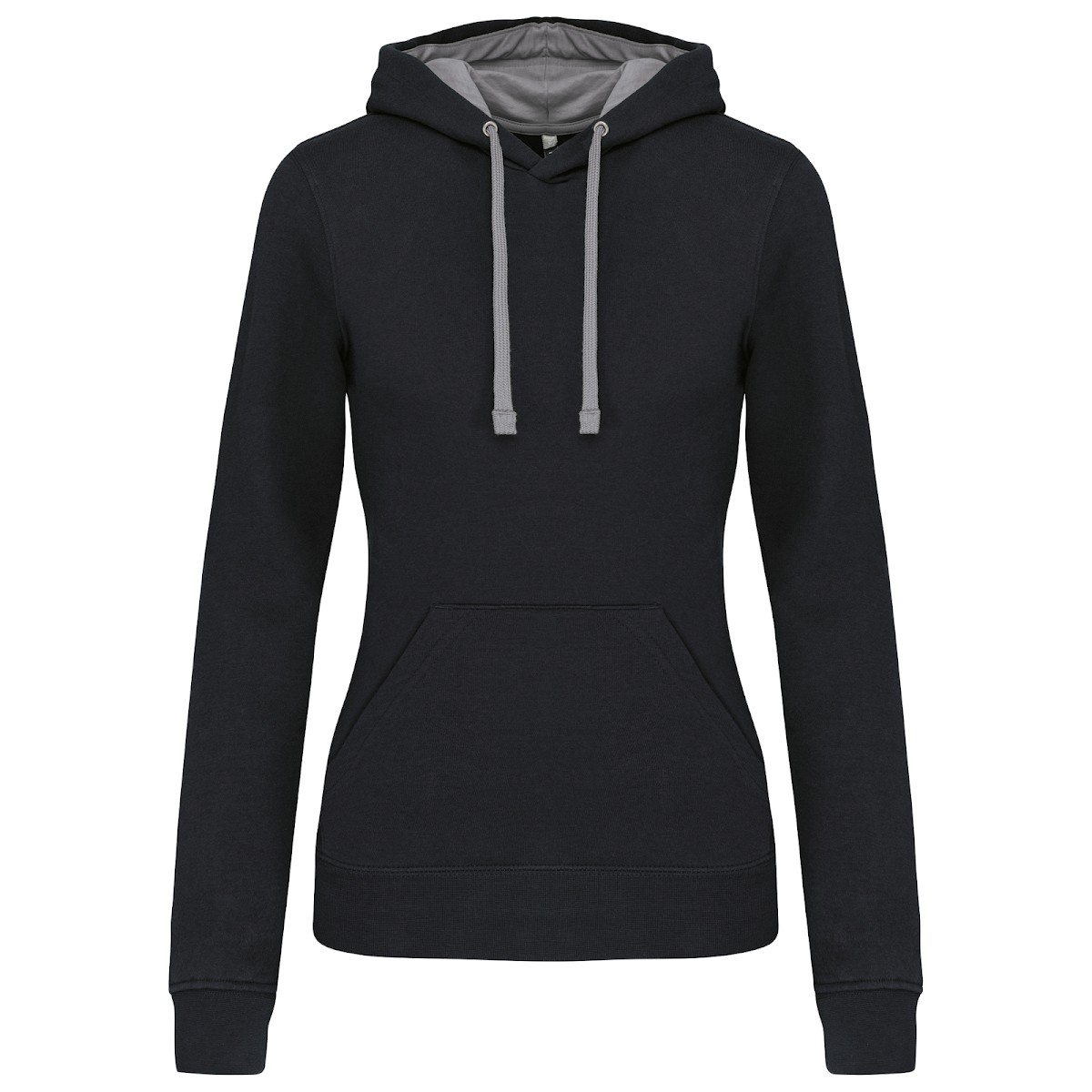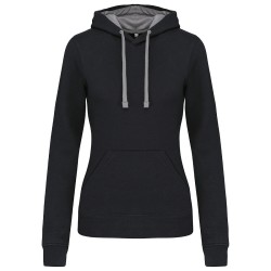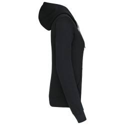 80% coton / 20% polyester. Coton peigné. Molleton gratté. Passe-fil écouteurs dans la poche kangourou et encolure. Bord-côte bas de manches et de vêtement. Capuche doublée et contrastée avec cordon de serrage.