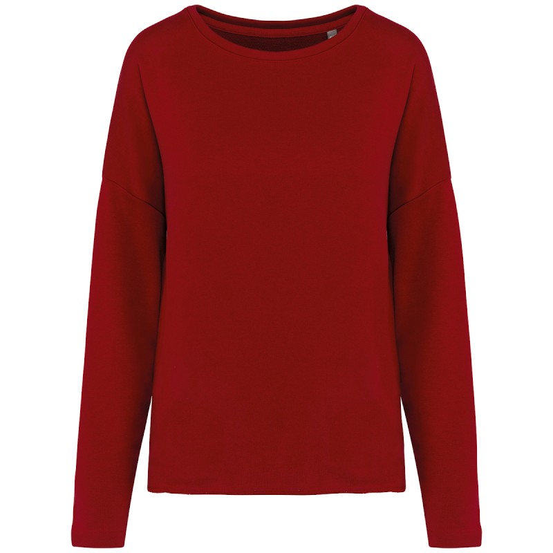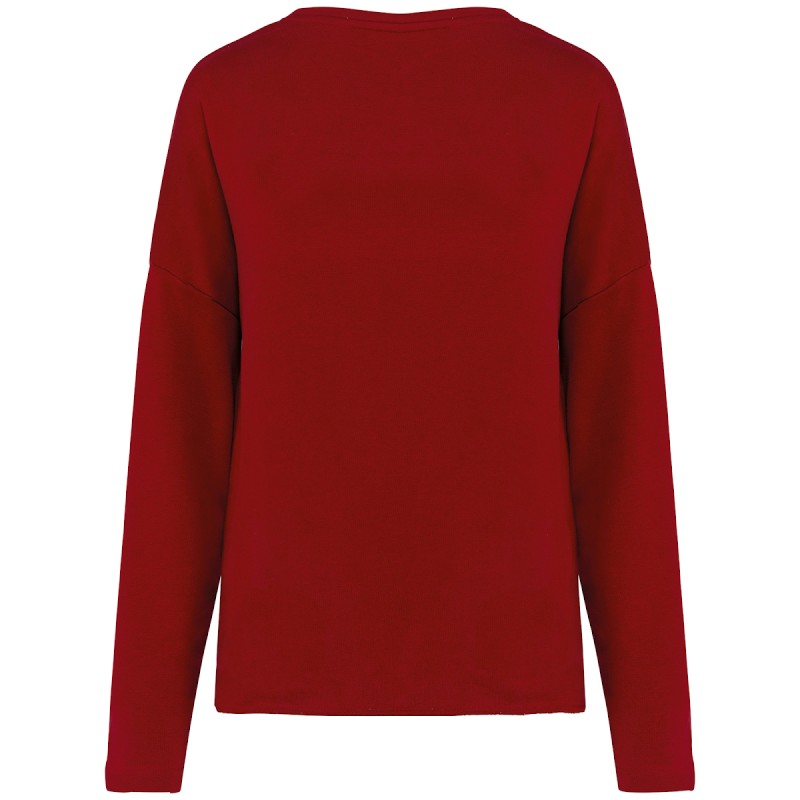 91% coton / 9% polyester (87% coton / 9% polyester / 4% viscose pour coloris chiné). Molleton non gratté "French Terry". Toucher ultra doux. Coupe loose décontractée avec large encolure. Bande de propreté chevron. Bords francs au bas du vêtement. Finitions double aiguille bas de manches. Pas d’étiquette de marque au col, uniquement une puce de taille pour faciliter la personnalisation.