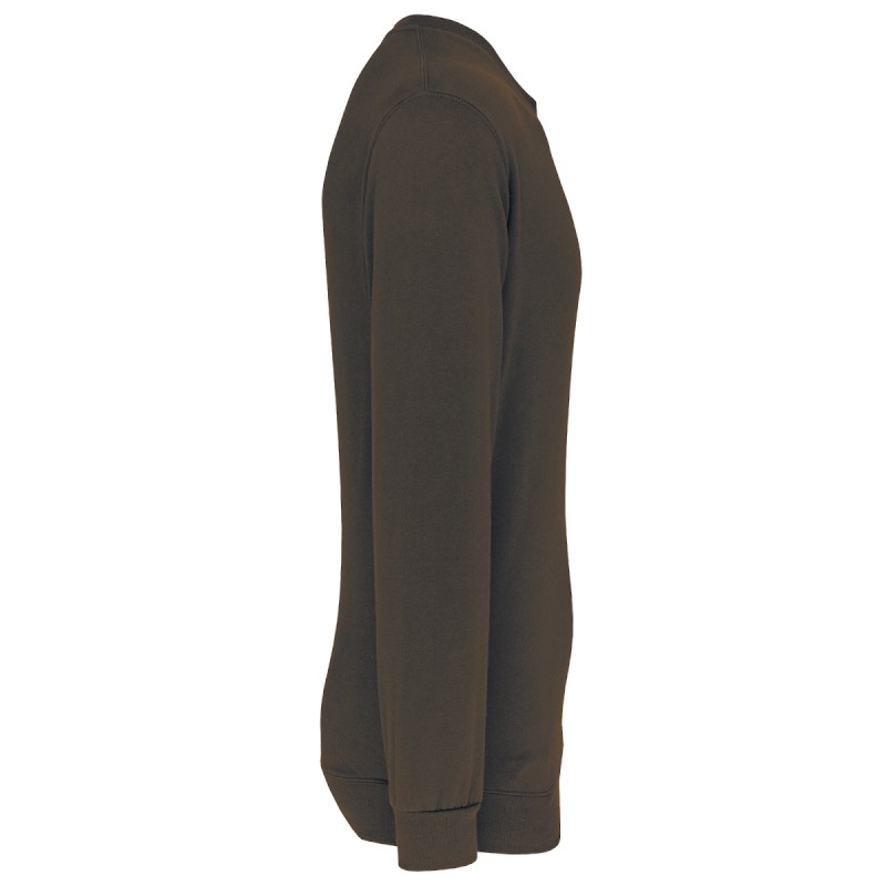 80% coton / 20% polyester. Coton peigné. Molleton gratté. Manches montées. Finition bord-côte encolure, bas de manches et de vêtement.