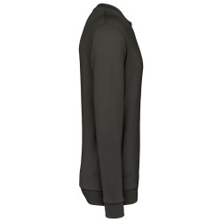 80% coton / 20% polyester. Coton peigné. Molleton gratté. Manches montées. Finition bord-côte encolure, bas de manches et de vêtement.