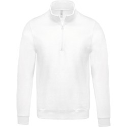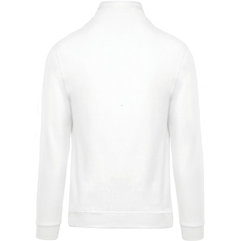 80% coton / 20% polyester. Coton peigné. Molleton gratté. Manches montées. Col zippé avec bande de propreté ton sur ton. Finition bord-côte bas de manches et de vêtement.