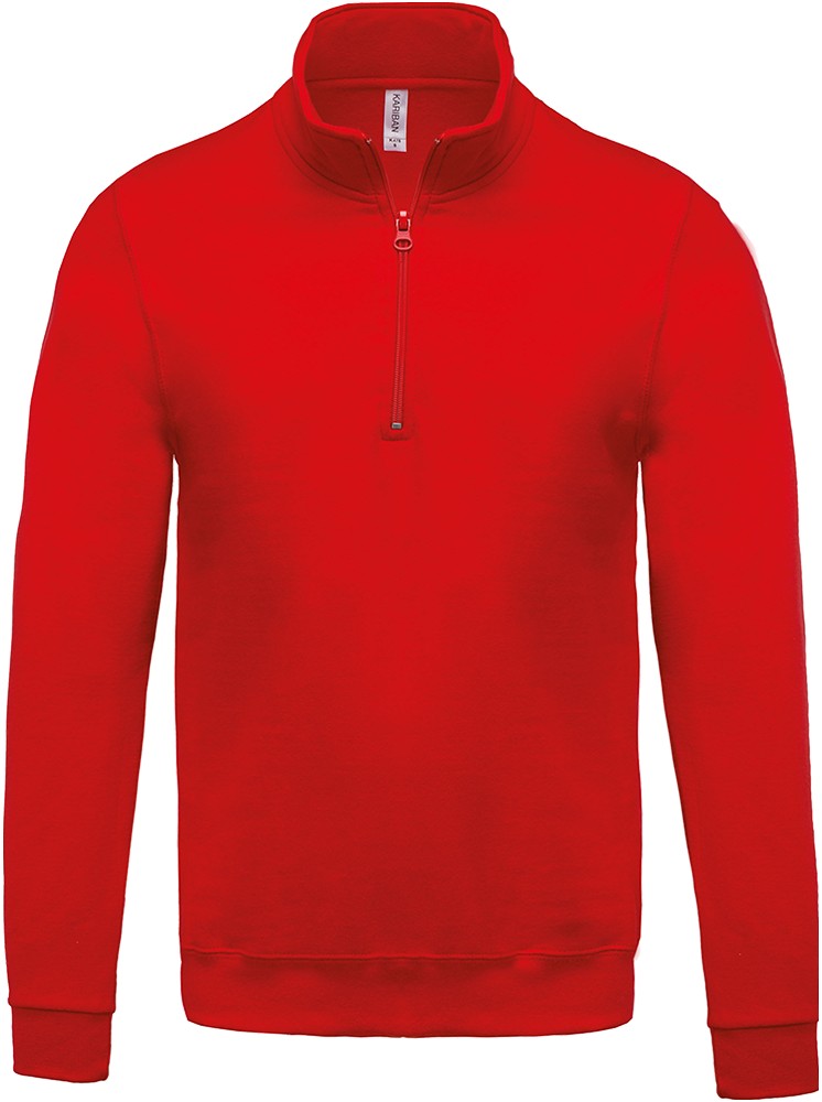 80% coton / 20% polyester. Coton peigné. Molleton gratté. Manches montées. Col zippé avec bande de propreté ton sur ton. Finition bord-côte bas de manches et de vêtement.