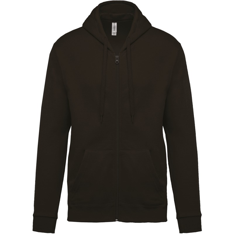 80% coton / 20% polyester. Coton peigné. Molleton gratté. Manches montées. Fermeture zippée nylon. Capuche doublée avec cordon de serrage ton sur ton. Poches Kangourou. Finition bord-côte bas de manches et de vêtement.