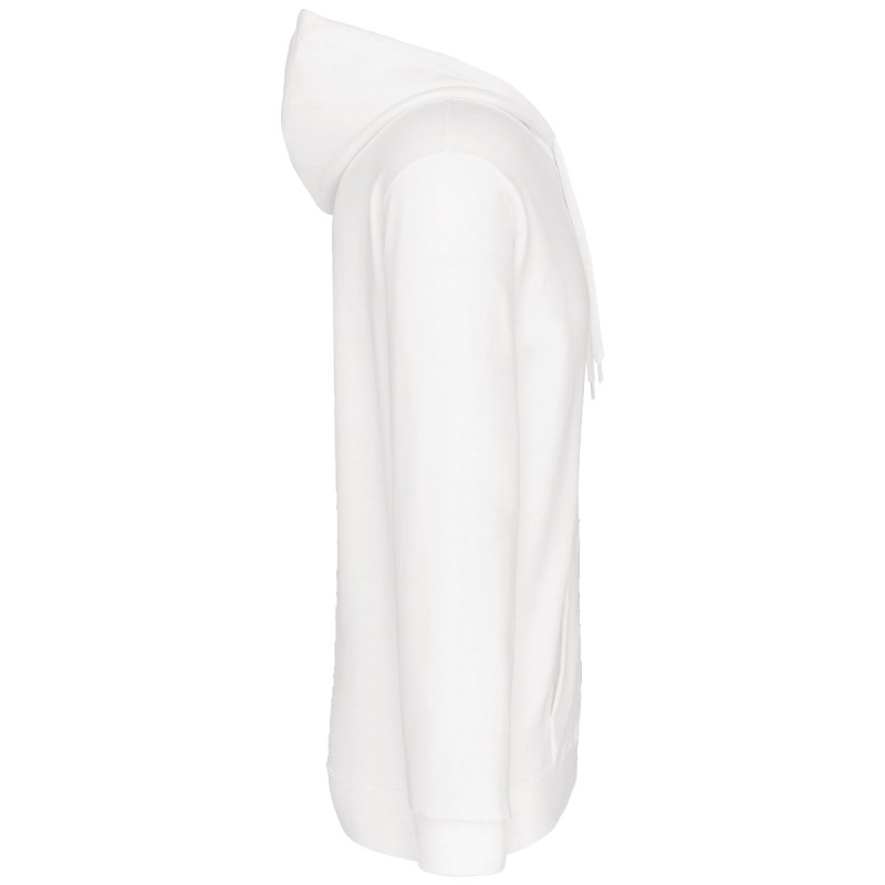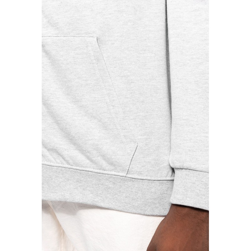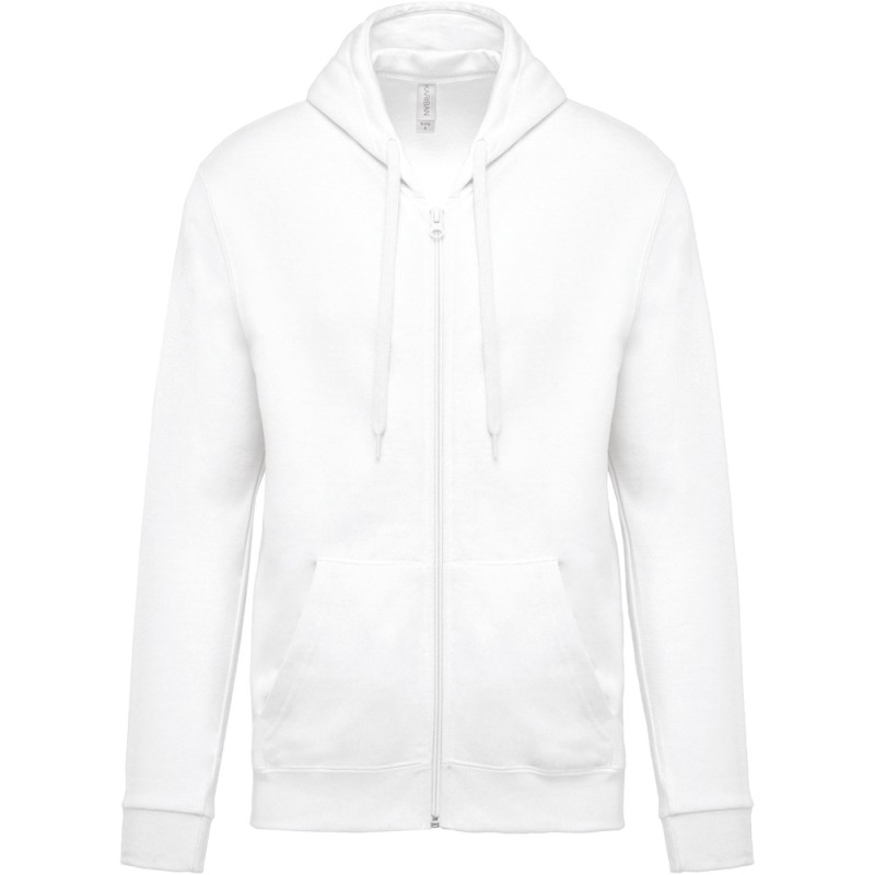 80% coton / 20% polyester. Coton peigné. Molleton gratté. Manches montées. Fermeture zippée nylon. Capuche doublée avec cordon de serrage ton sur ton. Poches Kangourou. Finition bord-côte bas de manches et de vêtement.