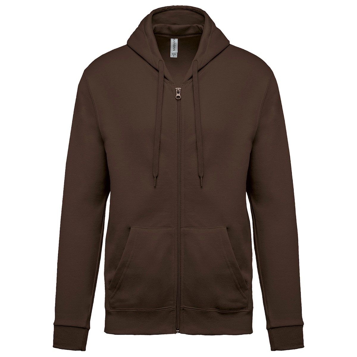 80% coton / 20% polyester. Coton peigné. Molleton gratté. Manches montées. Fermeture zippée nylon. Capuche doublée avec cordon de serrage ton sur ton. Poches Kangourou. Finition bord-côte bas de manches et de vêtement.