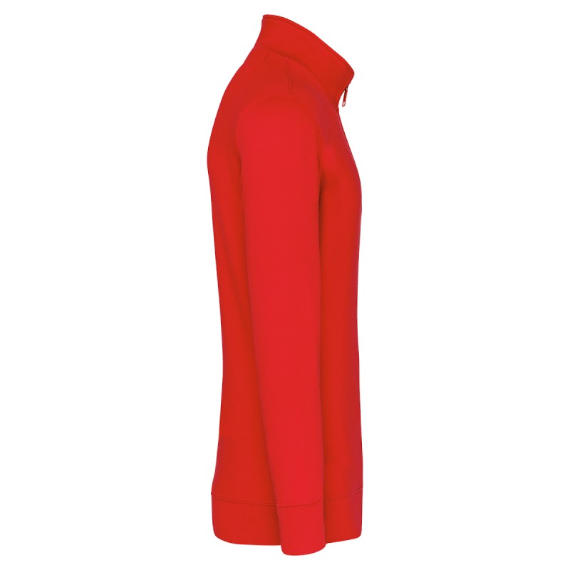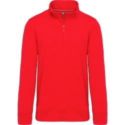 80% coton / 20% polyester (Ash Heather : 79% coton / 20% polyester / 1% viscose). Surface extérieure 100% coton. Traitement LSF (Low Shrinkage Fleece : molleton prérétréci). Molleton gratté 3 fils en coton peigné. Manches montées. Col avec fermeture zippée plastique ton sur ton. Bande de propreté contrastée à l'encolure (Navy pour le coloris Oxford Grey et Ash Heather ; Oxford Grey pour tous les autres coloris). Finition bord-côte poignets et de bas de vêtement.