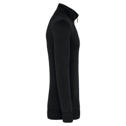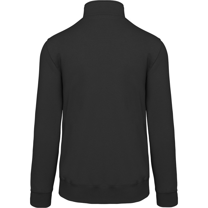 80% coton / 20% polyester (Ash Heather : 79% coton / 20% polyester / 1% viscose). Surface extérieure 100% coton. Traitement LSF (Low Shrinkage Fleece : molleton prérétréci). Molleton gratté 3 fils en coton peigné. Manches montées. Col avec fermeture zippée plastique ton sur ton. Bande de propreté contrastée à l'encolure (Navy pour le coloris Oxford Grey et Ash Heather ; Oxford Grey pour tous les autres coloris). Finition bord-côte poignets et de bas de vêtement.