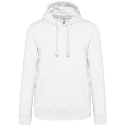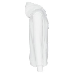80% coton / 20% polyester (Ash Heather : 79% coton / 20% polyester / 1% viscose). Surface extérieure 100% coton. Traitement LSF (Low Shrinkage Fleece : molleton prérétréci). Molleton gratté 3 fils en coton peigné. Manches montées. Bande de propreté contrastée à l'encolure (Navy pour le coloris Oxford Grey et Ash Heather ; Oxford Grey pour tous les autres coloris). Capuche doublée en nid d'abeille avec cordon de serrage. Poches kangourou. Finition bord-côte poignets et de bas de vêtement.