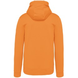 80% coton / 20% polyester (Ash Heather : 79% coton / 20% polyester / 1% viscose). Surface extérieure 100% coton. Traitement LSF (Low Shrinkage Fleece : molleton prérétréci). Molleton gratté 3 fils en coton peigné. Manches montées. Bande de propreté contrastée à l'encolure (Navy pour le coloris Oxford Grey et Ash Heather ; Oxford Grey pour tous les autres coloris). Capuche doublée en nid d'abeille avec cordon de serrage. Poches kangourou. Finition bord-côte poignets et de bas de vêtement.