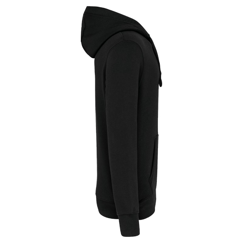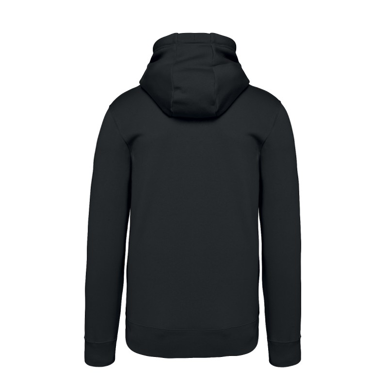 80% coton / 20% polyester (Ash Heather : 79% coton / 20% polyester / 1% viscose). Surface extérieure 100% coton. Traitement LSF (Low Shrinkage Fleece : molleton prérétréci). Molleton gratté 3 fils en coton peigné. Manches montées. Bande de propreté contrastée à l'encolure (Navy pour le coloris Oxford Grey et Ash Heather ; Oxford Grey pour tous les autres coloris). Capuche doublée en nid d'abeille avec cordon de serrage. Poches kangourou. Finition bord-côte poignets et de bas de vêtement.