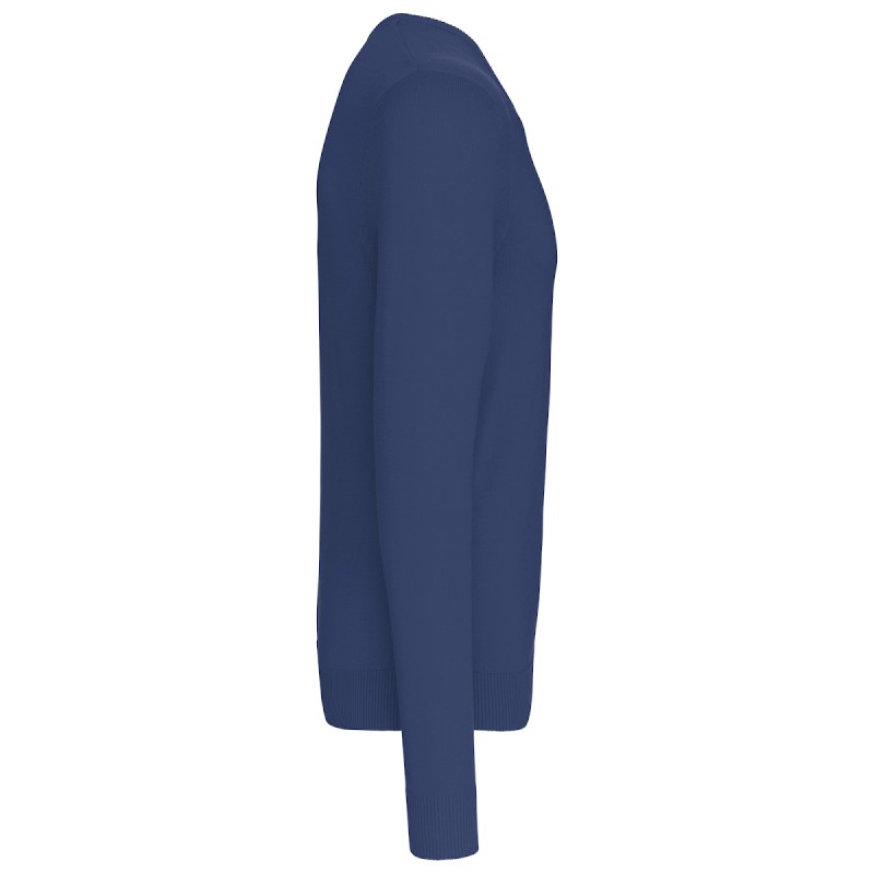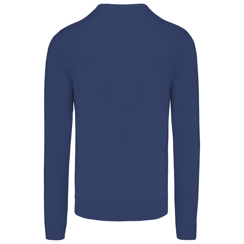 50% coton / 50% acrylique (jauge 12). Coupe ajustée. Bord-côte du col double épaisseur. Bande de propreté à l'encolure.