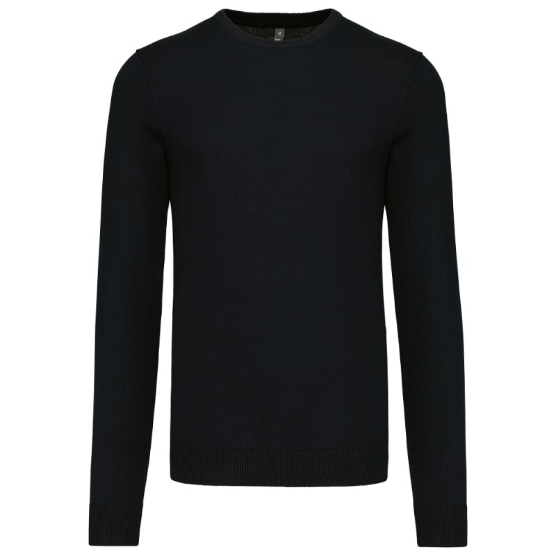 50% coton / 50% acrylique (jauge 12). Coupe ajustée. Bord-côte du col double épaisseur. Bande de propreté à l'encolure.
