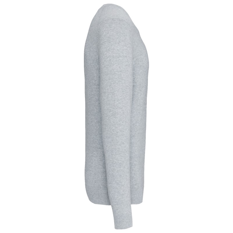 87% coton / 11% polyamide / 2% élasthanne. Col V et bande intérieure tricotée contrastée. Bord-côte 1x1 au col, bas de manches et de vêtement. Coupe élégante et confortable.