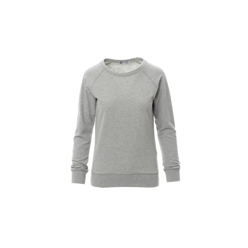 Sweat-shirt femme, encolure bateau à bord vif, manches raglan, poignets et taille en bord à côtes élastifié, coutures renforcées.