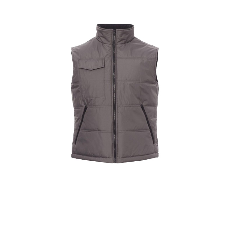 Gilet matelassé avec arrière profilé et rembourrage surpiqué, finition avec doublure haute densité, intérieur du col en polaire. Deux grandes poches zippées, poche porte-téléphone sur la poitrine et poche intérieure.
