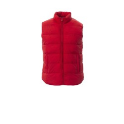 Gilet homme rembourré effet duvet, fermeture éclair en plastique couverte, deux poches extérieures à fermeture éclair couverte, intérieur couleur en contraste.