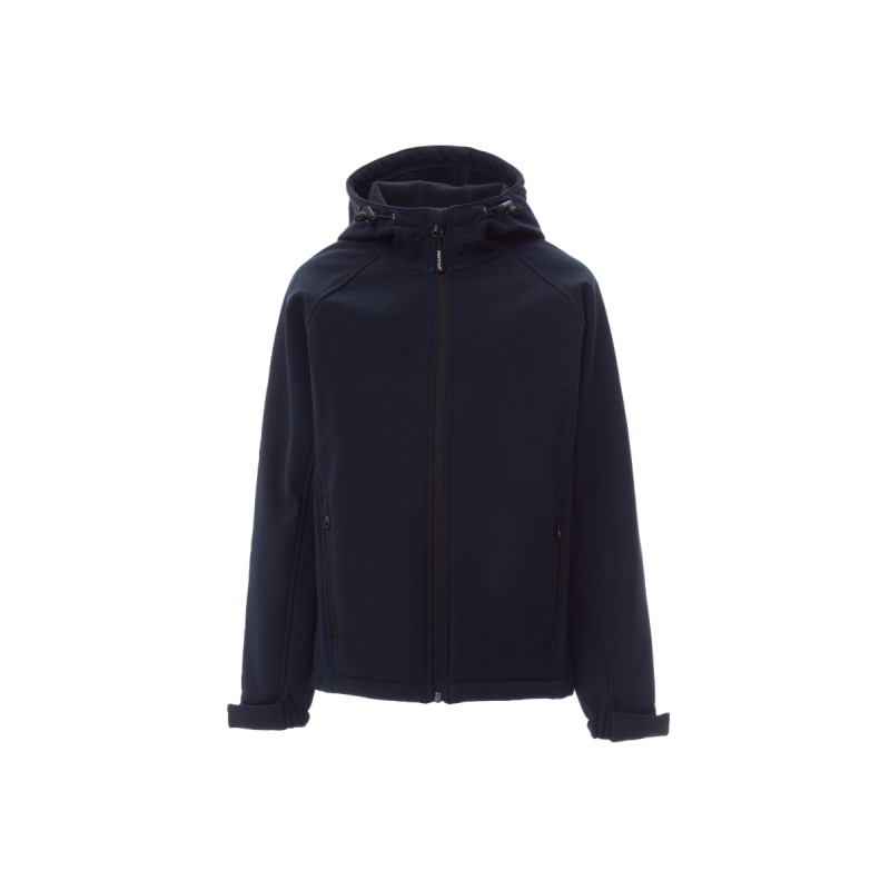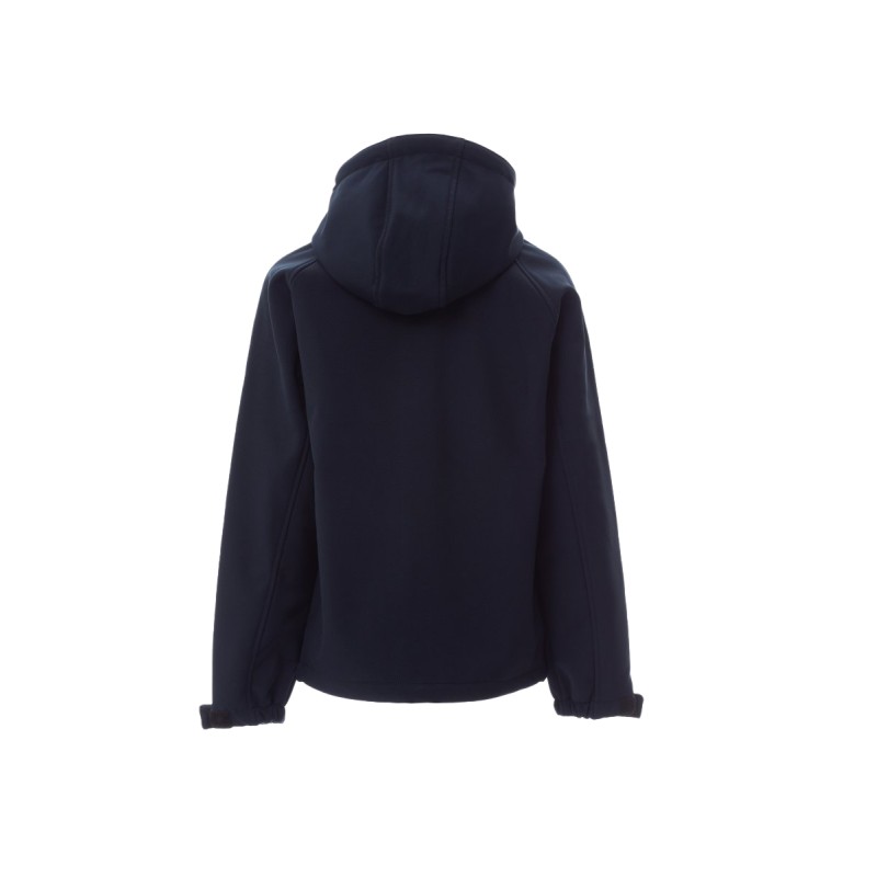 WP 8000 mm H₂O, WVT 5000 g/m² 24h. Veste ergonomique enfant, manches raglan, capuche profilée à deux coutures et coulisse, fermeture éclair longue avec ruban, élastique et serre-poignet en velcro, deux poches externes zippées.