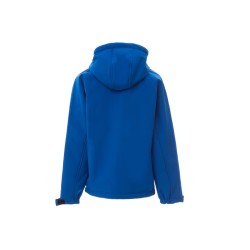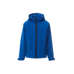 WP 8000 mm H₂O, WVT 5000 g/m² 24h. Veste ergonomique enfant, manches raglan, capuche profilée à deux coutures et coulisse, fermeture éclair longue avec ruban, élastique et serre-poignet en velcro, deux poches externes zippées.