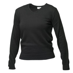 Pull Buxbom Femme Manches longues Manches et bas de corps en bord côte large Col V Tricotage jauge 12 Coupe cintrée 100% coton
