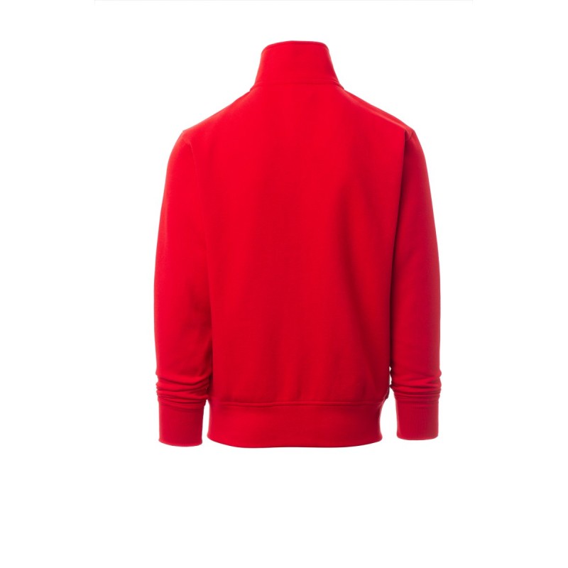 Sweat-shirt pour homme, zip intégral en plastique assorti avec curseur simple personnalisé, manches montées, deux poches passepoilées avec zip, poignets et taille en bord côtes élastique, coutures renforcées, ruban de renfort intérieur col assorti.