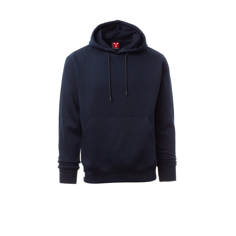Sweat-shirt pour homme, capuche avec cordon coulissé assorti, couture esthétique en V au col, poches kangourou, manches montées, poignets et taille en bord côtes élastique, coutures renforcées. Ruban de renfort intérieur col assorti.