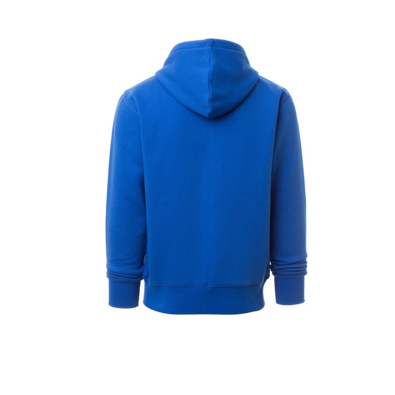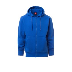 Sweat-shirt pour homme, zip intégral en plastique avec curseur simple personnalisé, capuche, cordon coulissé et coutures assortis, manches montées, poches kangourou, poignets et taille en bord côtes élastique. Coutures renforcées, ruban de renfort intérieur col assorti.