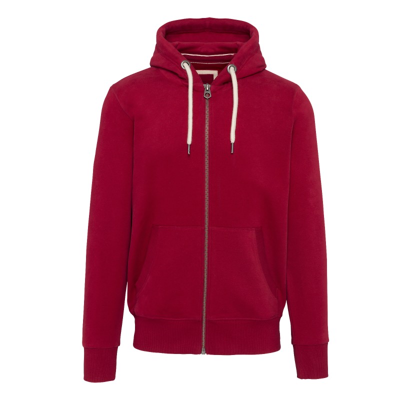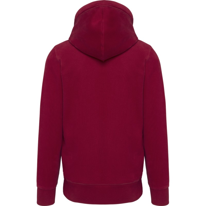 80% coton / 20% polyester (Ash Heather : 79% coton / 20% polyester / 1% viscose). Molleton gratté. Toucher peau de pêche et aspect "Vintage". Fermeture zippée métal. Capuche doublée. Cordon capuche rond et contrasté. Double bande de propreté en chevron à l'encolure. Poches kangourou. Finition bord-côte bas de manche et bas de vêtement. Ce produit a subi un traitement spécial et présente un aspect volontairement vieilli. Ce procédé de fabrication implique des variations de couleurs d'un produit à l'autre et rend chaque pièce unique. Pas d'étiquette de marque, uniquement une indication de taille pour faciliter la personnalisation.