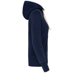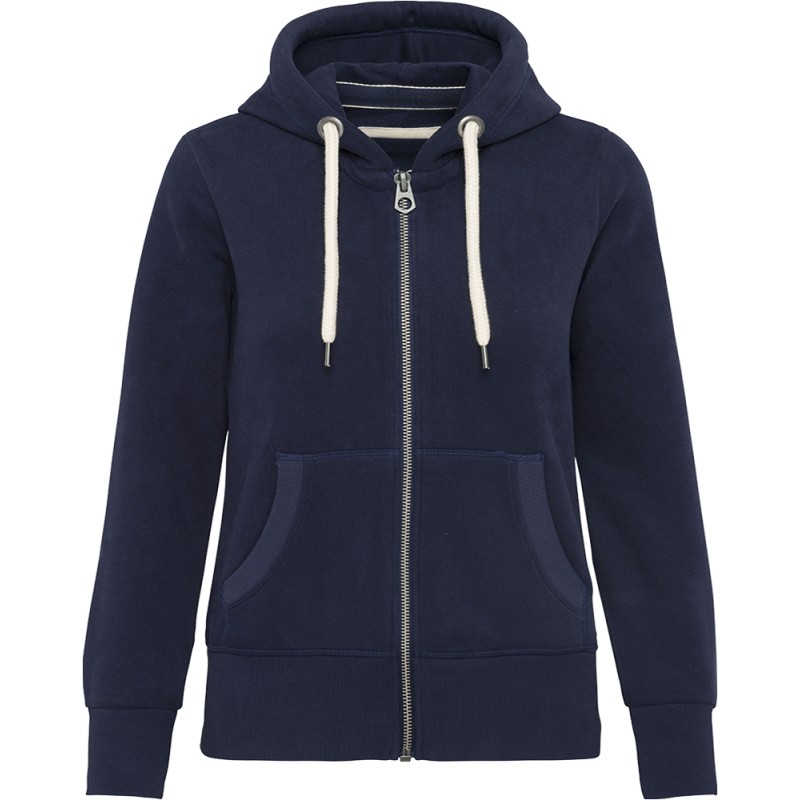 80% coton / 20% polyester (Ash Heather : 79% coton / 20% polyester / 1% viscose). Molleton gratté. Toucher peau de pêche et aspect "Vintage". Fermeture zippée métal. Capuche doublée. Cordon capuche rond et contrasté. Double bande de propreté en chevron à l'encolure. Poches kangourou. Finition bord-côte bas de manche et bas de vêtement. Ce produit a subi un traitement spécial et présente un aspect volontairement vieilli. Ce procédé de fabrication implique des variations de couleurs d'un produit à l'autre et rend chaque pièce unique. Pas d'étiquette de marque, uniquement une indication de taille pour faciliter la personnalisation.