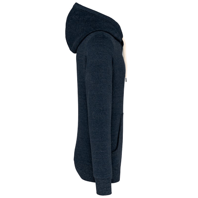 80% Coton / 20% Polyester (Ash Heather : 79% coton / 20% polyester / 1% viscose). Molleton gratté. Toucher peau de pêche et aspect "Vintage". Capuche doublée. Cordon capuche rond et contrasté. Bande de propreté fantaisie à l'encolure. Poches kangourou. Finition bord-côte bas de manche et bas de vêtement. Ce produit a subi un traitement spécial et présente un aspect volontairement vieilli. Ce procédé de fabrication implique des variations de couleurs d'un produit à l'autre et rend chaque pièce unique. Pas d'étiquette de marque au col, uniquement une indication de taille pour faciliter la personnalisation.